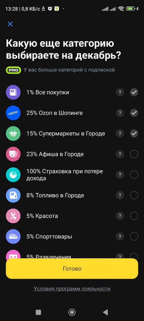 Автоматического начисления кэшбэка — все промокоды и категории нужно активировать вручную в приложении.