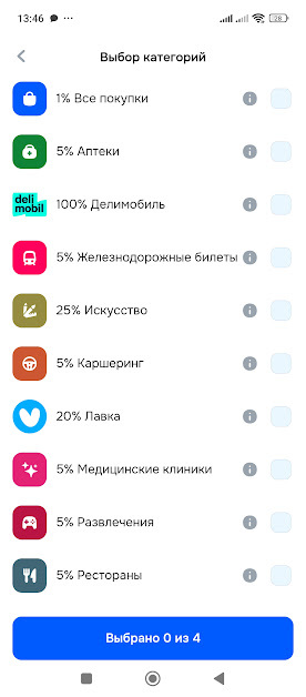 - Гарантированные 5% на рестораны и фастфуд (у кого-то эта категория недоступна без подписки)